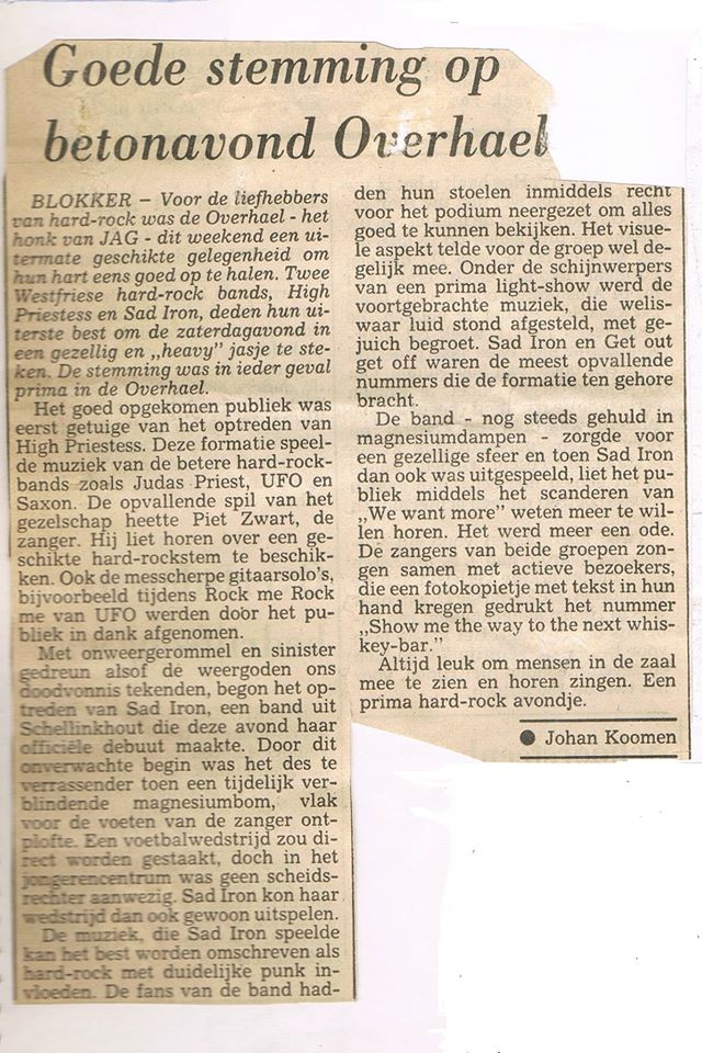 “SAD IRON was one of the first bands in Holland playing speed metal, even nowadays it still isn’t old fashioned. I think there’s no metal band, comparable with SAD IRON. That’s one of our best memories. We play to kill. For us it’s one great happening.”