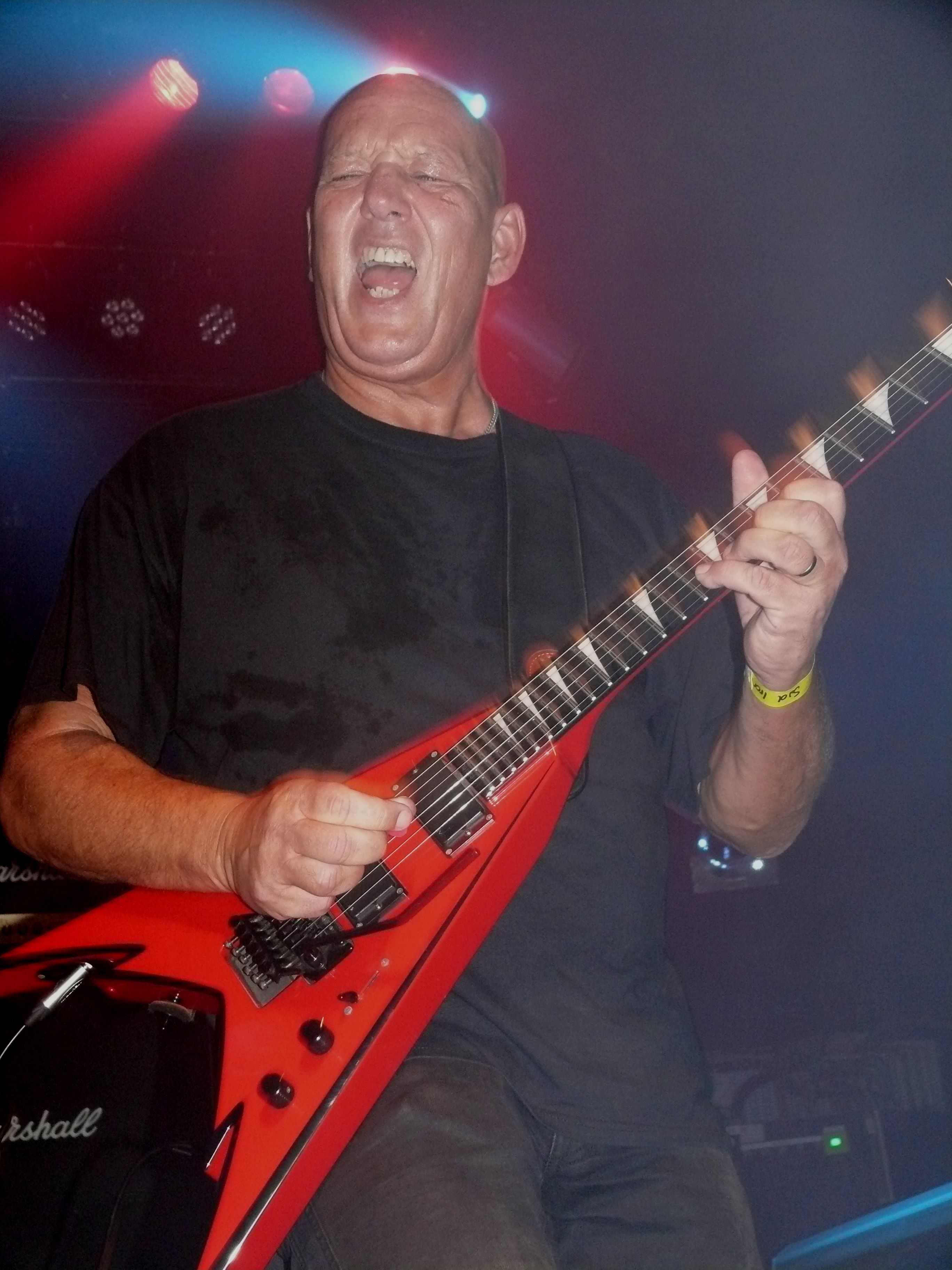 When the grim reaper comes, it’s time to die. When STEVE GRIMMETT’S GRIM REAPER comes, it’s time to rock the place down and to shake on its foundations. GRIM REAPER did some shows in America with Nick Bowcott and for a nano-second, I hoped that he would play with Nick here as well. Not that this band isn’t good enough for me, but the combination of Steve Grimmett’s voice and Nick’s guitar work made GRIM REAPER to something special. Steve has played for the maniacs a few times, but I guess that he is welcome here every year. When you see, that the original name for the band is STEVE GRIMMETT’S GRIM REAPER, you know that Nick Bowcott will not be around this time. So the ultimate metal sound comes from THE REAPER and when the first notes of “Rock You To Hell” are being played, the P60 seems to explode. Steve’s voice is in good shape and his band is hungry to rock. Steve looks slimmer than ever and with his blonde hair waving in the wind, he still looks like a young metal God. What more can you ask for? After “Night Of The Vampire” (HOWL!), “Lust For Freedom” and “Wrath Of The Ripper”, it’s clear that we’re dealing with the ultimate headliner here. The sound is good, the atmosphere is perfect and the band plays their rough NWOBHM the way you want it. After “Now Or Never”, it’s time for the second title track of the three albums, that the band released. This time we have to “Fear No Evil”. This is a bit of a strange song, while the man with the scythe is standing on stage in front of you. It’s time to sing along to the chorus again. “Liar” is on next and after that we’re treated on the title track of the new album, that will appear next year, so Steve told us in the announcement. “From Hell” sounds quite catchy and if this is the sound of the new album, then I can order my copy blindfolded. “Never Coming Back” is not autobiographical I guess and the whirlwind of REAPER classics continues with “Lay It On The Line”, “Rock Me Till I Die”, “Matter Of Time” and “Blue Murder”. At the end of the show however, you can tell that a lot of the audience has already left the venue. You don’t really notice, when you’re in front of the stage, like me, but once you do a little step back it’s clear that some big empty spaces are appearing. It won’t be because of the band, because they have a little surprise for their fans at the end of the show. It’s time to pay tribute to RONNIE JAMES DIO with “Don’t Talk To Strangers”. For long term fans of the band, this might not be a real surprise, but the crowd goes wild one more time. “Wasted Love” is on next and then it’s time for one of my personal favorites “Final Scream”. On the album there is a short play between father and son, before the song starts. It’s not suitable for the faint hearted, for little children and people of a high age, but I always loved that spooky play before Steve outs his “Final Scream”. One more time I plug in my air guitar and when the band closes this marvelous set with “See You In Hell”, I find myself in a musical heaven. I’m afraid, that I screamed my lungs out one more time, leaving some lung tissue on the floor of the P60. STEVE GRIMMETT’S GRIM REAPER consists of Steve Grimmett on heavy metal vocals, Ian Nash on guitar, Paul White on drums and Chaz Grimaldi on bass. They were an excellent headliner tonight.