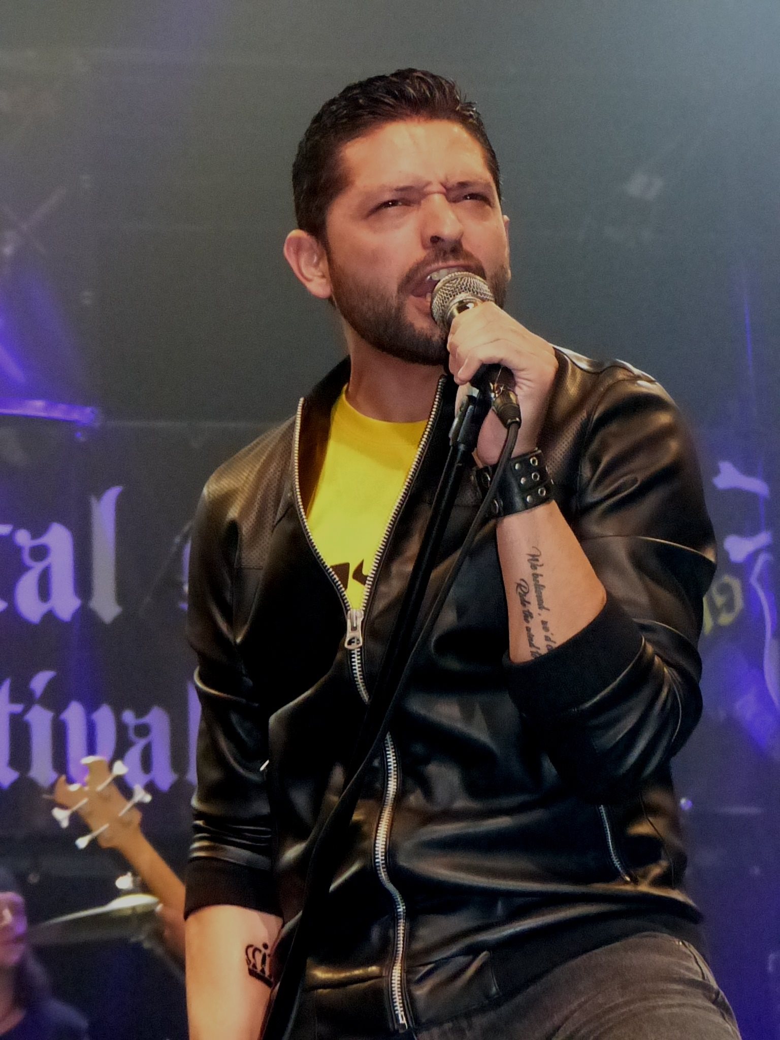 MAVERICK mag vanavond openen en morgen gaat FRENZY aan de bak, ook een Spaanse band. De verstandhouding tussen de Nederlandse en Spaanse metalheads is nou eenmaal perfect door de jaren heen. De bands worden vanavond aangekondigd door HAMMERHAWK, EMERALD, FLYING EMBYO’S, FINAL HEIRESS gitarist Paul van Rijswijk en ex-GLORIA VICTIS frontman en een van de oppermaniacs Stefan Bosland, dus dat zit wel snor. We krijgen met MAVERICK al gelijk een mooie verrassing voorgeschoteld. De originele zanger David Requejado kan door omstandigheden niet aanwezig zijn en hij wordt vervangen door Ronnie Romero. Moeten we die kennen dan? Als je onder een steen hebt geleefd niet nee, slaap dan maar rustig verder. Uit honderden gegadigden werd Ronnie gekozen om deel uit te maken van de nieuwe bezetting van RAINBOW. Zanger van LORDS OF BLACK, die werd gekozen boven oudgedienden als Graham Bonnett, Dougie White of Joe Lynn Turner. De man moet talent bezitten en de band trapt af met “Skyline” en het is aan de presentatie te merken, dat Ronnie een bovengemiddelde frontman is. Het contrast zal misschien wel groot zijn tussen de optredens met RAINBOW, voorafgegaan door THIN LIZZY en MANFRED MANN of openen hier in Amstelveen. Maar het enthousiasme is er bij de zanger niet minder onder. “Far From Over” komt van de EP “Break It Up” en is een cover van FRANKIE STALLONE. Al zal dat velen misschien ontgaan zijn of simpelweg aan hun reet geroest zijn. Het speelschema is een combinatie van covers en eigen nummers, waarbij Ronnie toch als absolute middelpunt gezien mag worden. “Into The Mirror” houdt de flow er aardig in, voordat we met “Out In The Fields” weer een klassieker voorbij horen komen. GARY MOORE scoorde er in 1985 een bescheiden hit mee in Nederland, in samenwerking met Phil Lynott van THIN LIZZY. Dertig jaar geleden alweer, maar de tekst zing je nog woord voor woord mee. Dat is de kracht van tijdloze muziek. Naast Ronnie, is bassist Javier Endara de man, die de zaak behoorlijk op weet te jutten. Na het eigen nummer “You Must Come With Me”, wat ook afkomstig is van de EP, kunnen we eindelijk ook nog een sprankje RAINBOW meekrijgen. In de vorm van “Spotlight Kid” wordt er gerefereerd naar de band van The Man In Black. Met “Love Through The Shadows” komt er alweer een einde aan dit optreden, dat smaakt naar meer. En meer krijgen we ook, want er is nog tijd voor een toegift in de vorm van het titelnummer van de EP “Break It Up”. De P60 is wakker geschud door deze sympathieke Spanjaarden. De kop is er af, nou de staart nog.