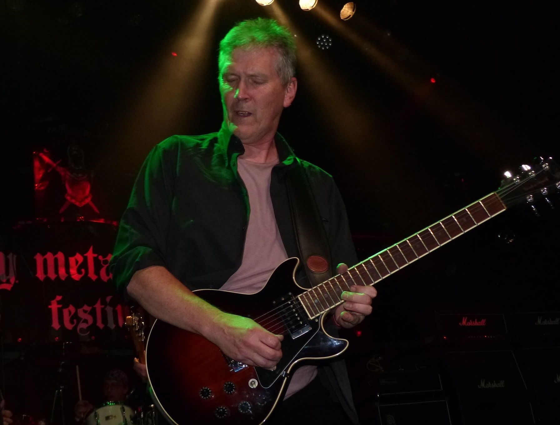 TROYEN maakte al goede promotie voor hun CD, voordat ze toegevoegd werden aan de bill van de vrijdag. Jeff Baddley had er in ieder geval al enorm veel zin in en het was een mooi vooruitzicht om deze mensen aan het werk te kunnen zien. Hun CD “Finish What You Started”is in ieder geval een heel erg leuke kennismaking met deze band uit de omgeving van Warrington, Cheshire in Engeland. Als je het schijfje hebt of kent, dan kan je meebrullen met de set van vanavond, want alle nummers die ze vanavond spelen zijn daarop te vinden. Als je de muziek van TROYEN nog niet kent, dan is er nog wel ergens een hoekje te vinden, waar je jezelf kan schamen. De band is opgericht in 1981 en was in die tijd maar een kort leven beschoren. In 2014 echter komt de band weer bij elkaar en zien dat de magie er nog steeds is, waarvan akte in hun goed gevulde set die hun CD dus zo goed als compleet voorbij laat komen. De nummers hebben diepgang en klinken lekker old school. Wat wil je ook met twee goede gitaristen in de line-up? Hier zijn mensen bezig, die muziek maken met een bepaalde liefde voor die muziek. Koesteren zo’n band, want er zijn er niet veel meer van. “Backlash” is een lekkere opener, die op de CD ook al goed binnen komt. De twee gitaristen wisselen elkaar regelmatig af en gelijk plakt de band “Dreams Never Lie” er achter aan. Na het horen van “Finish What You Started” en “First Blood” mag het al wel duidelijk zijn, dat TROYEN een bovengemiddeld niveau neer weet te zetten. De interactie met het publiek is goed en bij deze band wordt nog echt gemusiceerd. Vaak verzandt een band in oeverloos geriff of moet het volume de mensen bij de les houden. Hier is het enthousiasme van de band haast voelbaar en dat reflecteert zich al snel op het publiek, dat de inzet van de band zeer waardeert. “Don’t Send Me To War” bevat een duidelijke boodschap. Hoe kan het dat zo’n geweldige band pas recentelijk op is gaan vallen en dat je er als leek bijna nooit ergens iets van gehoord of gezien hebt? Heeft iedereen dan al die jaren zitten slapen? “Futures Friend” en “Syrian Lady” sluiten dit weergaloze concert af. De reactie van het publiek is overweldigend en je kunt zien, dat dit de heren goed doet. Nog een keer gaan alle remmen los met een toegift in de vorm van “Crazy Lady”. Het hek is nu echt van de dam. Ze weten zelfs het beste en meest rockende nummer tot het laatste te bewaren, dat zelfs nog een treurwilg aan het swingen krijgt. Ik denk, dat veel mensen positief verrast zijn door TROYEN. Na het optreden kreeg ik gelukkig alle tijd om uitgebreid de bandleden te spreken en hun te complimenteren met dit geweldige optreden. Een echt toppertje dat TROYEN en daar is niets teveel aan gezegd. Blij, dat ik ze een keer live bezig heb kunnen zien in ieder geval.