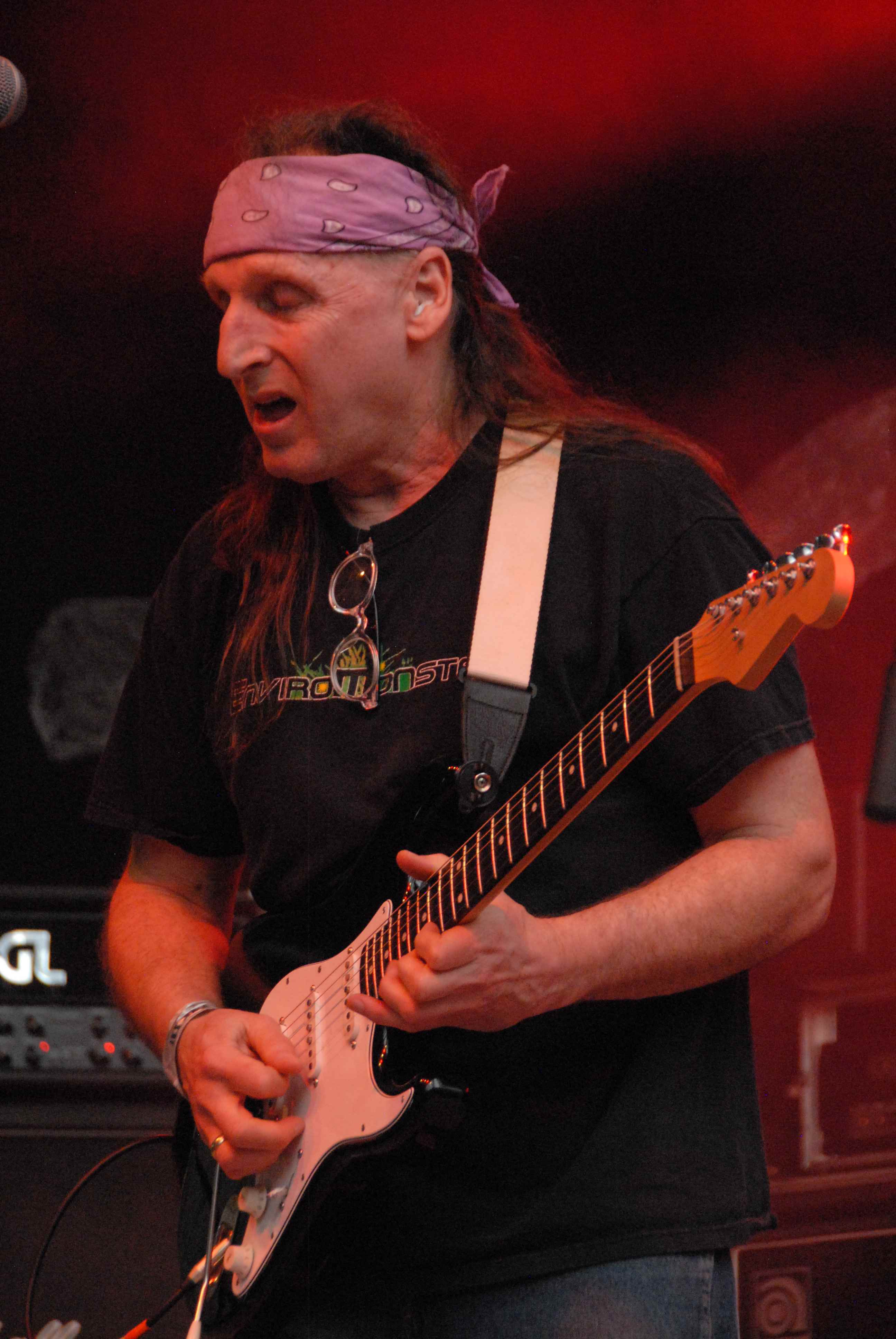The same actually goes for the next band. But before I get to that, I have to tell you about the picture that is standing on the stage. That is a photo of Mirko Marten. He is so sadly missed. It has been quite a shock to hear that this great rock fan passed away, much too soon. He was almost fifty years old and he has been one of the hosts for the bands performing here at the Keep It True. Next to that, he was a band promoter and we will miss him very, very much. The festival is dedicated to Mirko and I think he would be putting both thumbs up from up above. Look, he's sitting next to Michael Trengert. Life can be so hard at times..... Why?????