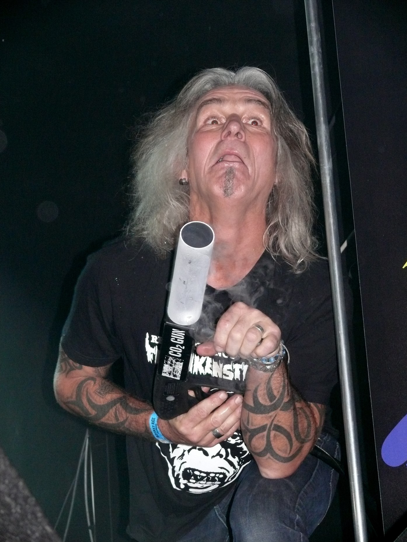 JURASSIC PARK is a resort for dinosaurs. Rock dinosaurs that is, because the band consists of two former FRANKENSTEIN members that just want one thing: to rock it out loud! Berthus Westerhuis and bass player Roelof Kloeze once were in this awesome Dutch metal band. Marshall stacks are brought on stage and that is a good thing. Not as many as in Veeningen at the reunion gig of FRANKENSTEIN, but this venue is a lot smaller. The musical war starts off with “Ready To Rock”, when bombs explode and the crowd goes insane. (Oops, I said the word ‘war’ again - I’m not supposed to do that, but I did it again, I’m afraid!). The Marshalls are put on max and no one can stop these rock and roll animals anymore. “Stay Clean” is taken from the FRANKENSTEIN days. They mix old stuff with new and add some covers to it, just like GILGAMESJ did. These guys know to entertain their fans for many years now and this is just the way to do it, when you’re that long in business like they’ve been. “Rock And Roll Machine” is on next and their own-penned material blends very well to the older stuff. “I Don’t Need No Doctor” is the first cover in their set, originally made famous by HUMBLE PIE, but I think that most people will also know the WASP or GREAT WHITE version of this classic tune. John Scholing is the perfect front man, who simply steals your heart away from the beginning. He’s constantly joking around and playing with his CO2-pistol. “Road Fever” is next and before you know it guitar wizard Berthus ‘Frankenstein’ Westerhuis kick starts MONTROSE’s “Bad Motor Scooter” on a neon lighted guitar, that has got the looks of a lit Christmas tree. Man, what power! The old school rockers in the front row really freak out now. It’s a shame, that the band removed ‘Storm’ from their set list. I guess, that stood for one of my personal FRANKENSTEIN faves “Storm Over Holland”. But BLACK SABBATH’s “Symptom of The Universe” isn’t a punishment as well. “Solid As A Rock” and “Back On the Street” are on next and slowly, their show starts to look like one big party. The CO2-ampul is emptied and the band closes their set with “Good Rocking Tonight”, another MONTROSE classic, that sums up the feeling of tonight in four minutes. Nice to know, that RONNIE MONTROSE is remembered so well by some of the bands tonight, because both JURASSIC PARK and GILGAMESJ take back to the fantastic songs of this awesome guitar player, who died much too young. JURASSIC PARK takes care of business really well and for the second time tonight one of the bands introduces their new drummer to the public. They have just recruited Hans ‘Dead Head’ Spijker, who really knows to hit the nail on the head tonight. FRANKENSTEIN was also featured on the “Metal Clogs” sampler and I hope, that they had much fun backstage with GILGAMESJ, who were on the same sampler by Rave On Records, led by Jack Hustinx.