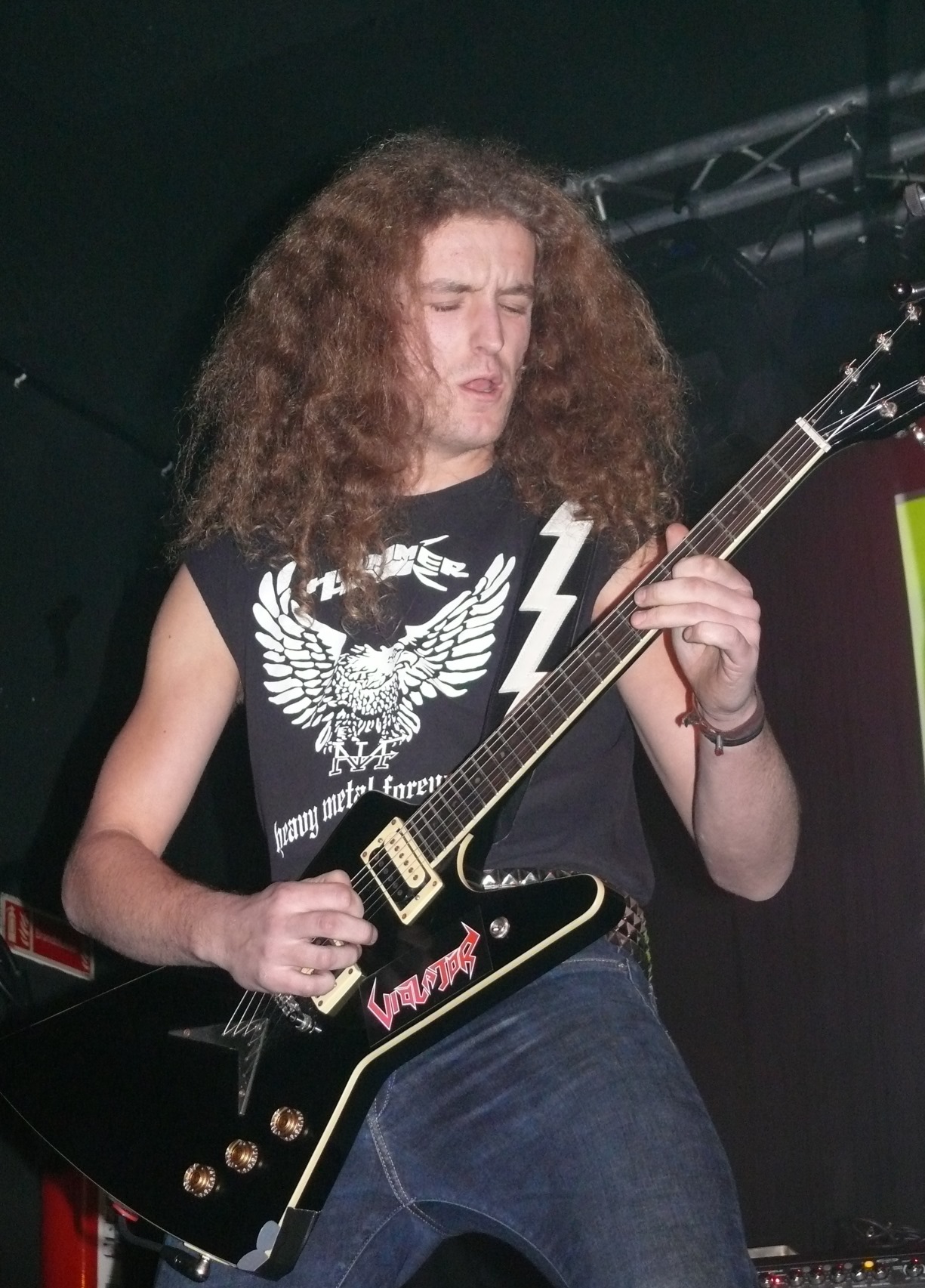 GLORIA VICTIS is something else. Stefan ‘Bozzy’ Bosland is the front man of this old school heavy metal band. A long instrumental intro leads Stefan on stage for “Saviour”. He’s dressed in a three piece black suit, including some mirror glazed sunglasses. That’s quite an outfit and some entrance. Stefan is moving wild and seems to have a good time on stage. I remember, “Mary Bell” being one of my favorite songs during the last show, that we witnessed of GLORIA VICTIS. Now this song came very early in the set and once again, it was a real highlight. After “The Bet”, there’s another long instrumental part to give Bozzy some time to change his outfit for “Dresden”, which is a song about the war. (quote: don’t mention the war, I mentioned it once now, but I hope I’m getting away with it!”). He’s dressed in an army uniform now. Maybe a bit overdone, but it really adds some show element to the songs, that they crank out tonight. “Blood & Sand” and “No Prophet” continue the set, in which Stefan shows his influences of Rob Halford (JUDAS PRIEST / HALFORD), David Bower (HELL) and of course Dunken Francis (MOURNBLADE). Another highlight this evening goes to “Confusion” - a song with a deeper meaning I found out later on. His wife manages the OVERRULED merchandise booth, while Stefan was entertaining the audience with GLORIA VICTIS. This must have been damn confusing for this Dutch screamer. They close their set tonight with “IED 9” and “Deimos & Phobos”. A very nice show, but I was still a bit flabbergasted after the OVERRULED gig, I must confess.