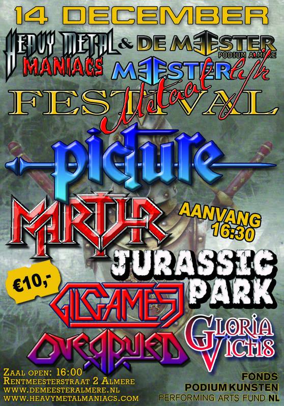 Jeroen Kroon, Rick Bouwman and Hans Pendavingh, you’d better remember these names very well. They put together a magnificent bill for the fifth anniversary of Meesterlijk Metaal. We’ve seen quite some editions of this marvelous festival, which mainly focuses on the Dutch metal scene. To celebrate the fifth anniversary of this festival, they called in the help of MARTYR guitar player Rick Bouwman to organize a Meesterlijk Metaal XXXL with six cheesehead metal bands on stage. For every devoted metal head, this is truly a must be and our agenda was marked with big neon letters and we counted the days for this jaw breaking event. OVERRULED, GLORIA VICTIS, GILGAMESJ, JURASSIC PARK, MARTYR and PICTURE are on the bill and these names really make my mouth water! Here’s what happened in Almere during this great Dutch metal event…