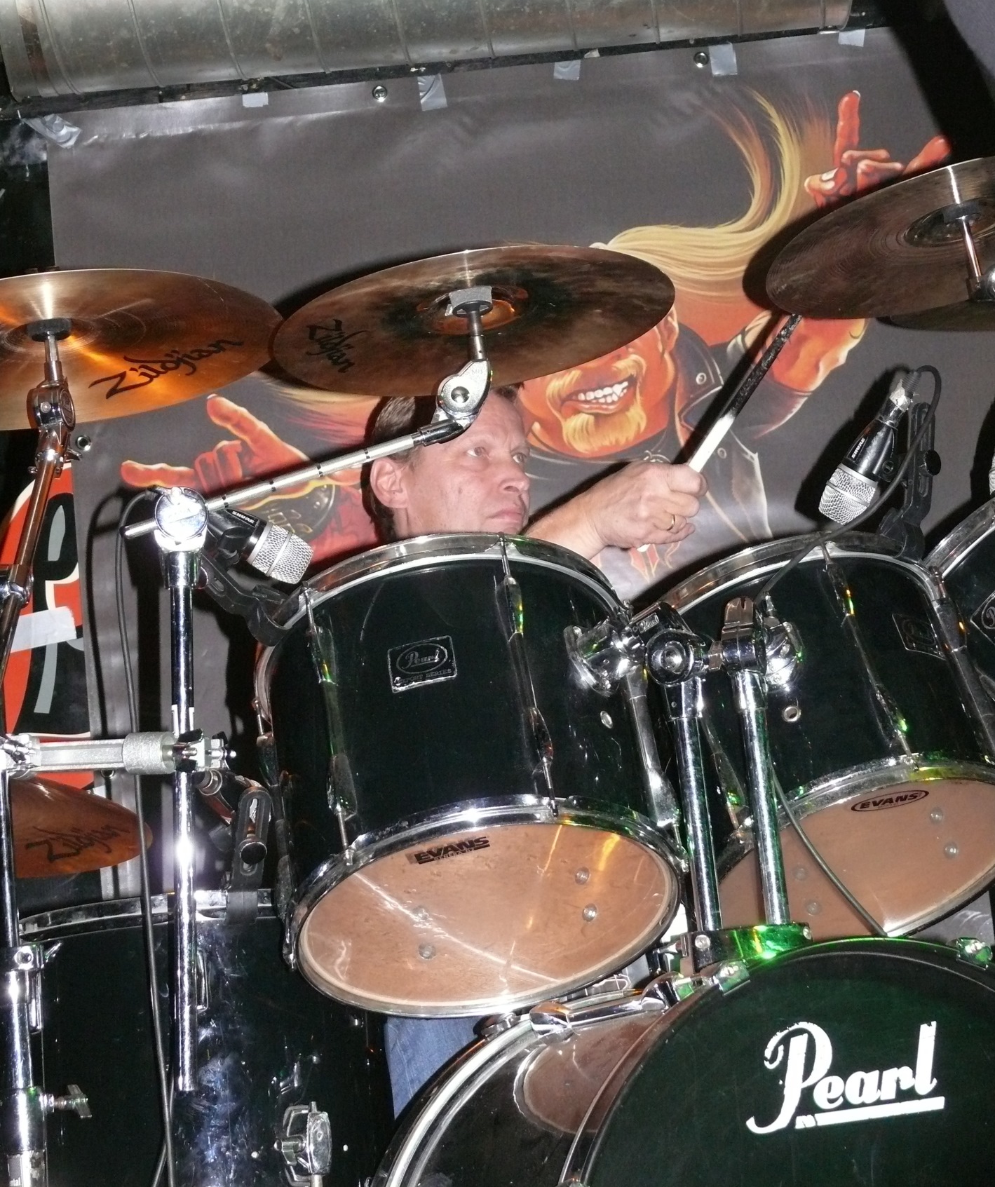 I must admit, that I’ve never been to the Little Devil in Tilburg before. And the last time, I walked these streets, must have been to visit Tommy, the metal record store in Tilburg. That was a very long time ago. Mario van Dooren is the organizer of this seventh metal meeting, which kicks off with the Dutch band SEVENTH SEAL. They are a true eye-opener for people, who are not familiar with the band. Their sound originates from the early eighties and tonight they’ll prove that they came to kill. Their debut album “Baptized By Fire” sounds like it was recorded in the eighties and their latest demo CD firmly kicks your ass, too. All the more reason to support these five guys, who already gained our respect in their previous bands. Our first acquaintance with the band was at de Meester in Almere at Meesterlijk Metaal. Both festivals are being organized by die hard metal fans, that have their heart at the right place. And this band fits just perfect in that ‘Do It Yourself’ atmosphere. They’re not only musicians, but also die hard music fans themselves. This creates a strong bond with their fans, which reflects in the spontaneous way they play their forty-five minutes set. “Time Will Come”, “Conspiracy” and “Like A Razor” continue the show and the band really seems to be in their element right now. Many headbangers have settled themselves in front of the stage and the gap between the audience and the band becomes smaller and smaller each song. I even noticed two really small headbangers in front of the stage with headphones on to protect their ears. I think, that their daddy has teached them these skills (yes, I mean you, Mario!). When SEVENTH SEAL close their set with “The Chosen One” and “Firedance”, the audience looks pretty warmed up. You can leave that up to these die hard rockers! To me, they were a great opener, rocking it out firmly and giving me the feeling of being eighteen again. But that was 172 years ago…. (lol). SEVENTH SEAL thanks their audience and clears the space for these Greek metal heads of RUTHLESS STEEL.