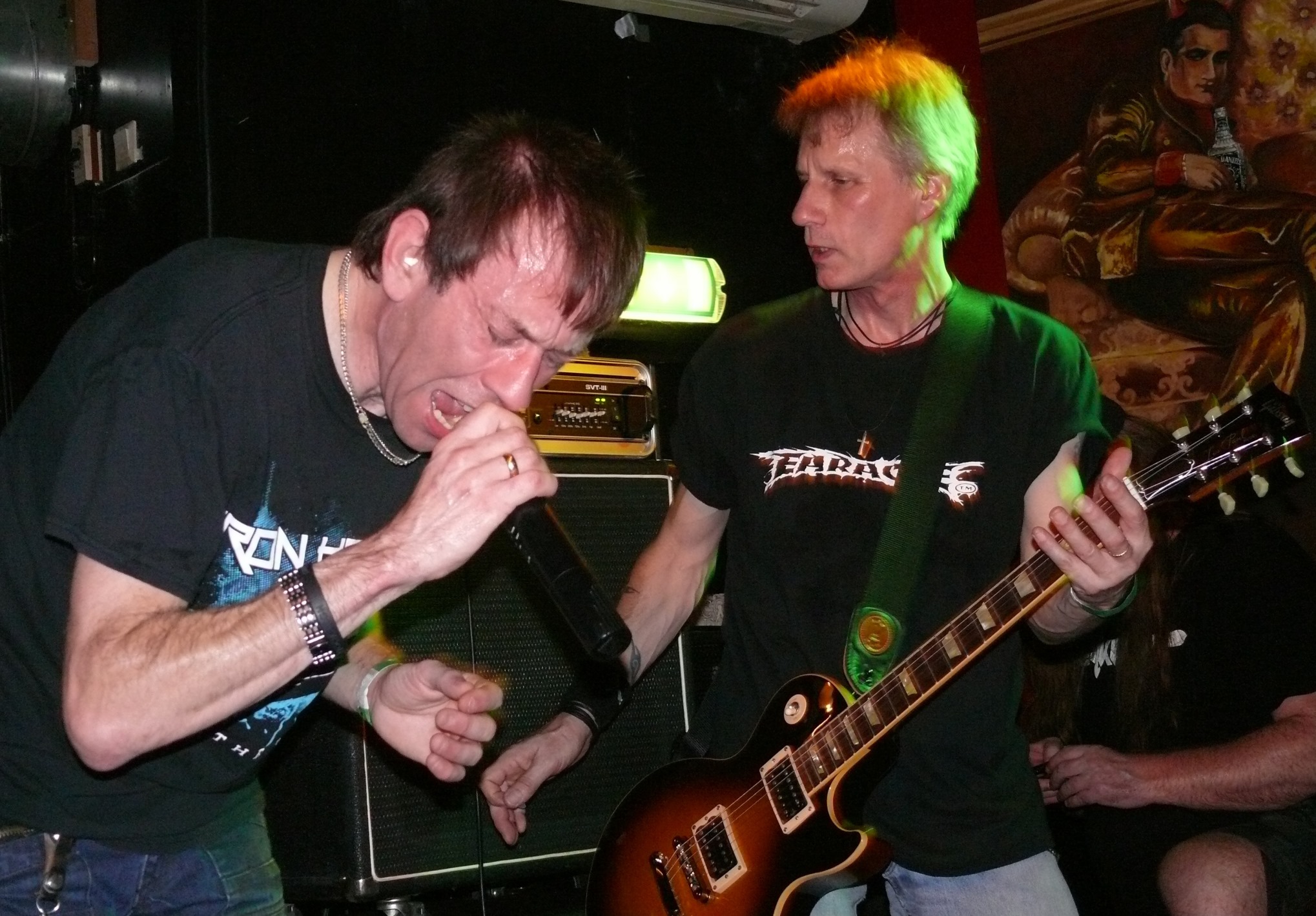 TYGERS OF PAN TANG has also been one of my favorite NWOBHM bands. Their very recognizable sound remained and stood the test of time pretty easily. I noticed, that Robb Weir was unpleasantly surprised by the lack of space on stage, but the enthusiasm of the hungry crowd would soon change his feelings. The soundcheck is over and done, but then the band has lost track of their drummer. Luckily, he’s only taking a leak and when he has found his way towards the stage through the mass of wild rockers, it’s finally PARTY TIME!!!!! The ‘wild catz’ open tonight’s show with “Keeping Me Alive”. Maybe it would have been better to open with an old classic, but hey the night is still young and anything can happen from now on. “Love Don’t Stay” is on next and when “Gangland” starts off, we’re in for another real old school headbanger from the NWOBHM classic album “Spellbound”. “She” is taken from the new “Ambush” album, which is promoted very well tonight with four tracks. I like the album a lot, but I must admit that I really came to hear the old school TYGERS stuff. However, when they continue with “Insanity” / “Raised On Rock”, I already got two of my favorites served back to back. “Mr. Indispensable”, “Paris By Air”, “Take It” and “Rock ‘N’ Roll Man” are being done as a medley and this way they know to please even more fans. It’ll be much easier to push more songs into your set this way. “The Story So Far” is another classic from the early days. The crowd absorbs every single second of this amazing gig. “Dark Rider” is the introduction of the TYGERS jukebox moment. The band is working towards the boiling point starting with the very first single they ever recorded, the magnificent “Don’t Touch Me”. The five tygers are in their element right now and another short medley arrives, in which Suzie is the main focus. First we hear “Hey Suzie” from the new “Ambush” album, which is followed by “Suzie Smiled” from the “Wild Cat” album. To me, that album is still the very best they’ve ever recorded. “Hellbound” reminds me of the days, when this band played at the famous Parkpop festival in The Hague in 1981 with BARRELHOUSE and GRUPPO SPORTIVO. “Hellbound” was one of the loudest songs played there that year. I still remember that friends of mine from The Hague told me, that they had a bad radio connection, because of the many decibels circulated by Robb and his mates. And although the atmosphere that JAGUAR created here a couple of minutes ago, can’t be beaten, the TYGERS close their amazing gig with “Euthanasia” and “Love Potion No. 9”. It’s far past eleven, when they pull the plug and these wild animals have to get back to their cages. It’s a sweaty closure of an amazing day here at the Little Devil. Time to hang out for a couple of moments with some friends we haven’t seen in ages. Our thanks especially go out to Mario (finally, we made it, mate), the six amazing bands, that came to rock and roll and everybody in general at the Little Devil (you know who you are). I think, we will have to look very closely for the line-up of the next edition of Mario’s Metal Meeting, because he sure knows how to create a crazy metal party!