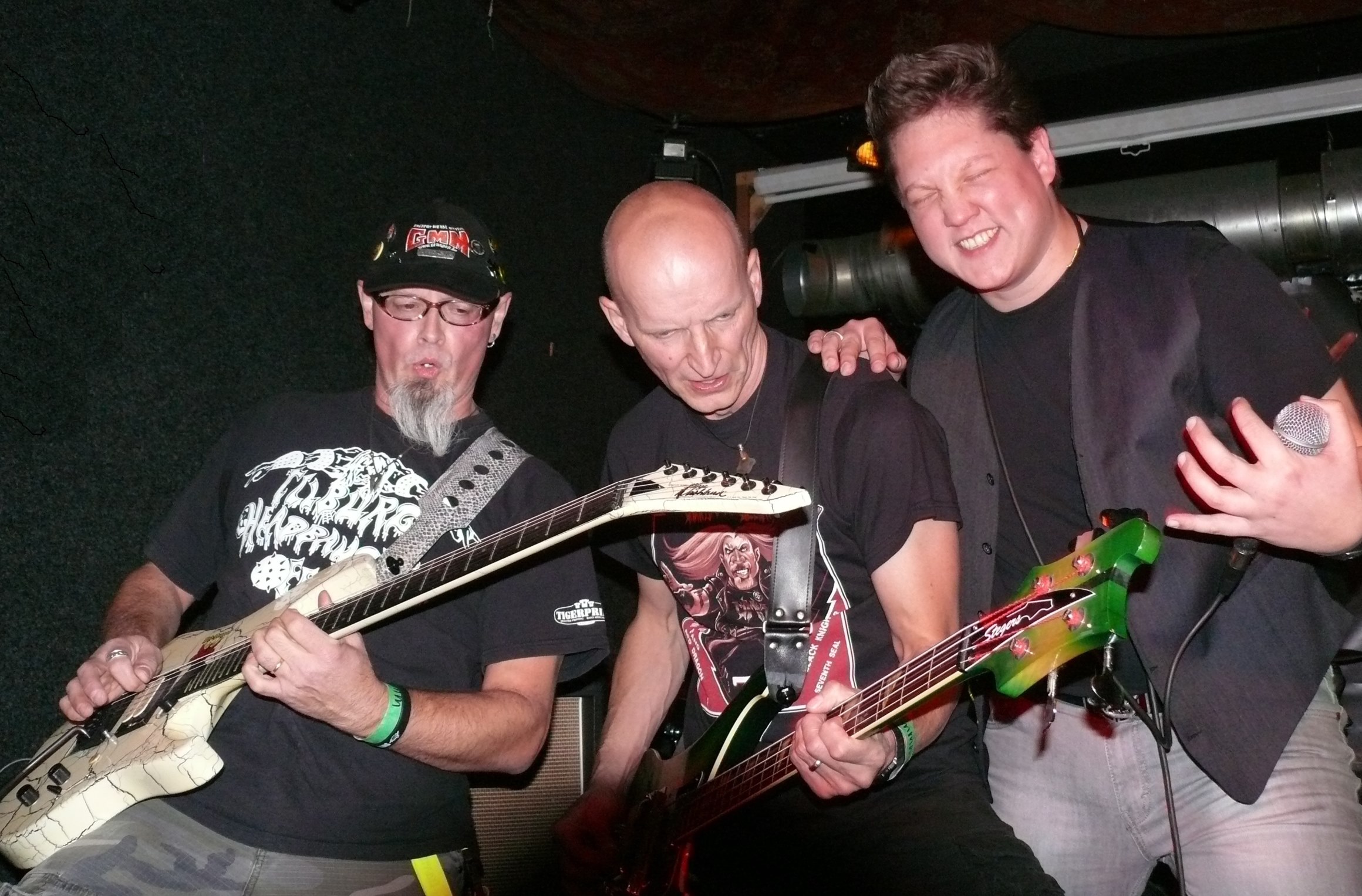 The swords are sharpened now and Dutch metal heads BLACK KNIGHT will take over the stage next. The dilemma for us is really huge now, because we have to plan some diner, too. That’s why we decide to watch just half of the set, because we’ve seen BLACK KNIGHT at the Heavy Metal Maniacs festival already and we haven’t seen RED DRAGON before, who are next on the bill. BLACK KNIGHT stands for solid heavy metal in the best JUDAS PRIEST / PRIMAL FEAR kind of style, including double lead guitars, a singer who can sing, scream and entertain, a stunning bass player and a drummer, who keeps the sword up for ‘the knight’ for many years now. They open with “Story Of The Day” and “Exvacated”. The double lead breaks show us an old school band, who already started their career in the early eighties and still playing music that is suitable for new born metallers as well. Songs like “Next Time You’ll Die” and “Beware Of The Blind” prove that their very solid sound is being admired by many people in the audience and the people up front of the stage seem to eat out of their hands. Those, who are not convinced yet, are also crossing the line, when the band plays the HAMMERFALL cover “Let The Hammer Fall”. It’s indeed a point of recognition, that nobody can deny. “Profound” and “Tale From The Darkside” mark the middle of BLACK KNIGHT’s ballsy set. And in between those songs we decide to go to the shoarma restaurant across the street to get some fast food together with Big Al and Anja. In the meantime BLACK KNIGHT closes their set with “The Green Manalishi (With The Two Pronged Crown)” (JUDAS PRIEST / FLEETWOOD MAC cover), “The One To Blame”, “Rival” and the PRIMAL FEAR cover “Running In The Dust”.