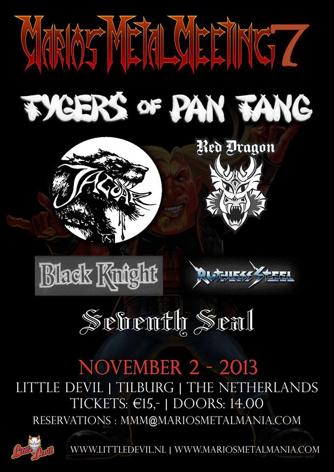 Mario’s Metal Meeting finally fitted in our schedule. When this event takes place, we are usually out of the country, but this time it was organized a bit later than normal. SEVENTH SEAL and JAGUAR are the main reason why we decided that we simply had to be there. It was also the first sold out edition. The whole bill was surprisingly good and armed with a plastic bag full of chocolate letters for the guys of JAGUAR, we went to the center of Tilburg for a great night of true heavy metal at the Little Devil.
