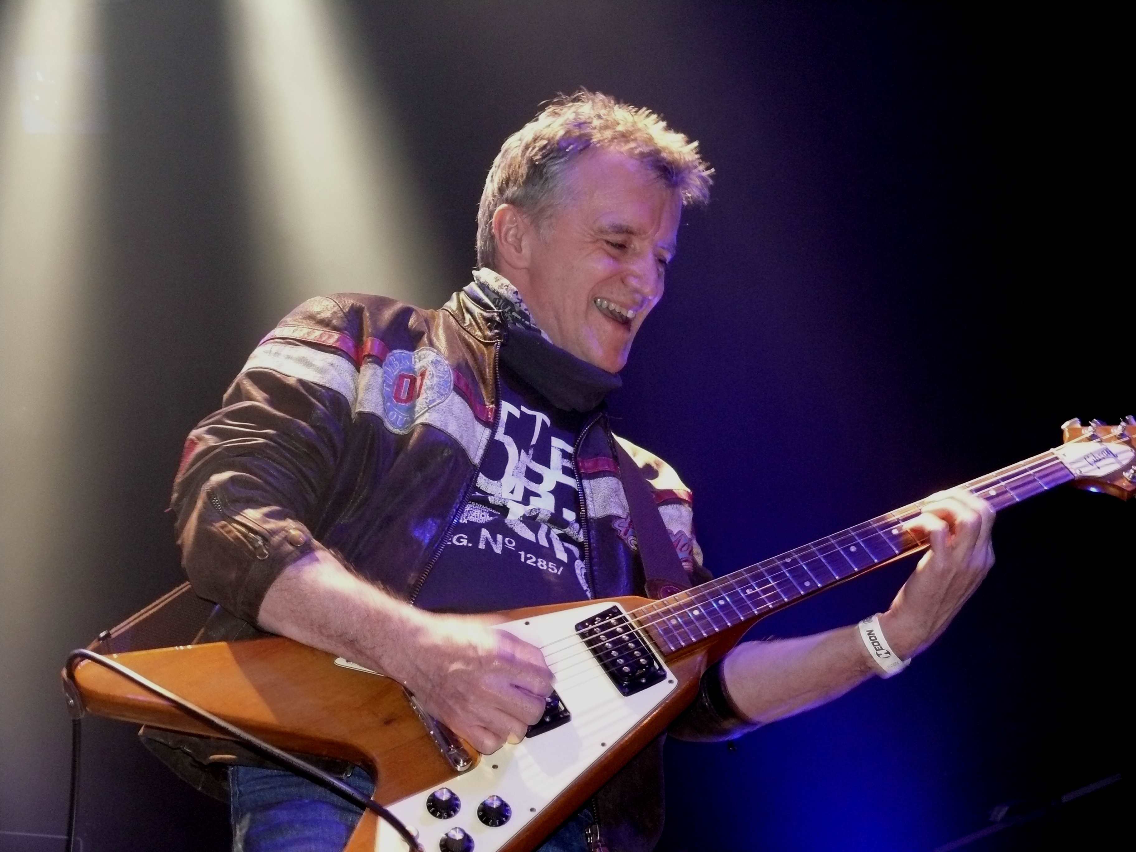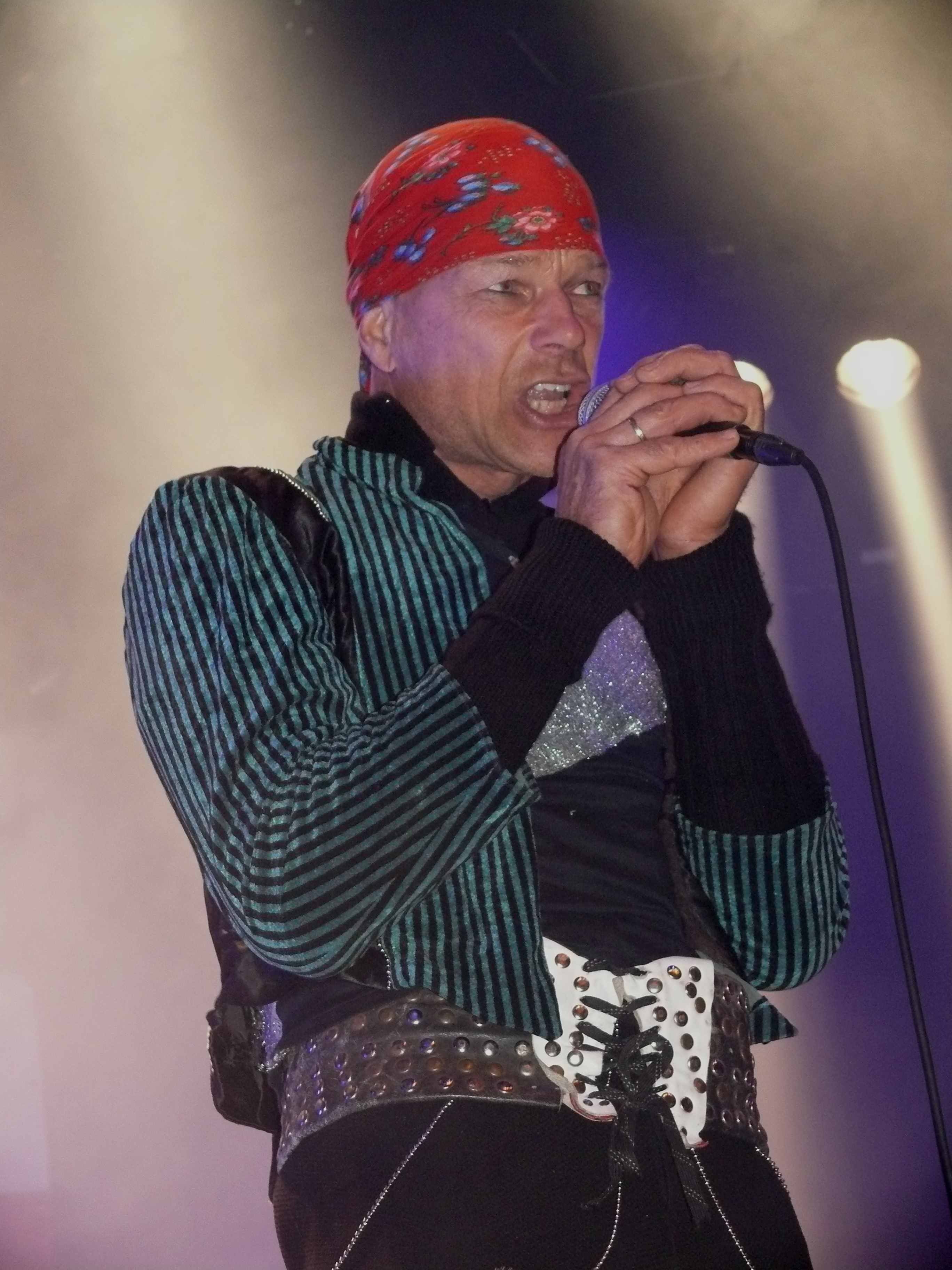 Doen we effe tussendoor, terwijl hij van de ene kant van het podium naar de andere rent en terug. Kinderen krijgen speciale aandacht en al gitaar spelend knielt hij bij ze neer om wat beter contact te kunnen maken. Geweldig toch, wat een held!! Henky heeft zelfs de meestal toch wel norse Russen aan het dansen gekregen, toen hij daar met JEWEL en KRUIZ was. Dan komen de JEWEL nummers om de hoek kijken, want daar komen we toch ook wel een beetje voor natuurlijk. “Circle Of Despair” is eerst en dat klinkt al vertrouwd. Op zich natuurlijk wel jammer, dat Rick Ambrose er niet bij is, maar Nico doet qua bokkesprongen niet echt onder voor hem. In “Road To Katmandu” is het de beurt aan Henky om zijn kunnen te tonen. Dat heb je niet tegen een dove gezegd. De gitaar wordt in allerlei standjes gespeeld. Bijvoorbeeld als een viool op zijn schouders. Alsof het de gewoonste zaak van de wereld is. Pipo de Clown is er gewoon saai bij. Dit soort stunten zie je alleen bij de allergrootsten. En Henky doet al zijn stunts zelf, he?! Petje af hoor, als ik er een op had. De naam van de band op het affiche is SWORD / JEWEL en het SWORD gedeelte krijgt hierna invulling. Het nummer “Excalibur” van dat ene zeldzame singletje staat op de verzamelaar en vandaag heeft de band een leuke verrassing voor ons in petto. Originele zanger van SWORD heeft de tekst nog een keer in zijn geheugen gestampt en zingt het in Zwolle met zoveel overtuiging, dat het lijkt alsog hij dit elke avond doet. Wat een geweldige uitvoering. Dit zijn de krenten in de pap op zo’n dag. Voor het laatste nummer krijgen we nog een cover voorgeschoteld, maar wel een nummer dat eigenlijk al een beetje verJEWELd is door de jaren heen. “These Boots Are Made For Walking” van good old NANCY SINATRA is het laatste werkje, wat de heren van SWORD / JEWEL voor ons ingestudeerd hebben. Nog een paar rare bekken van Henky tijdens zijn solo en dan is het over en uit.
