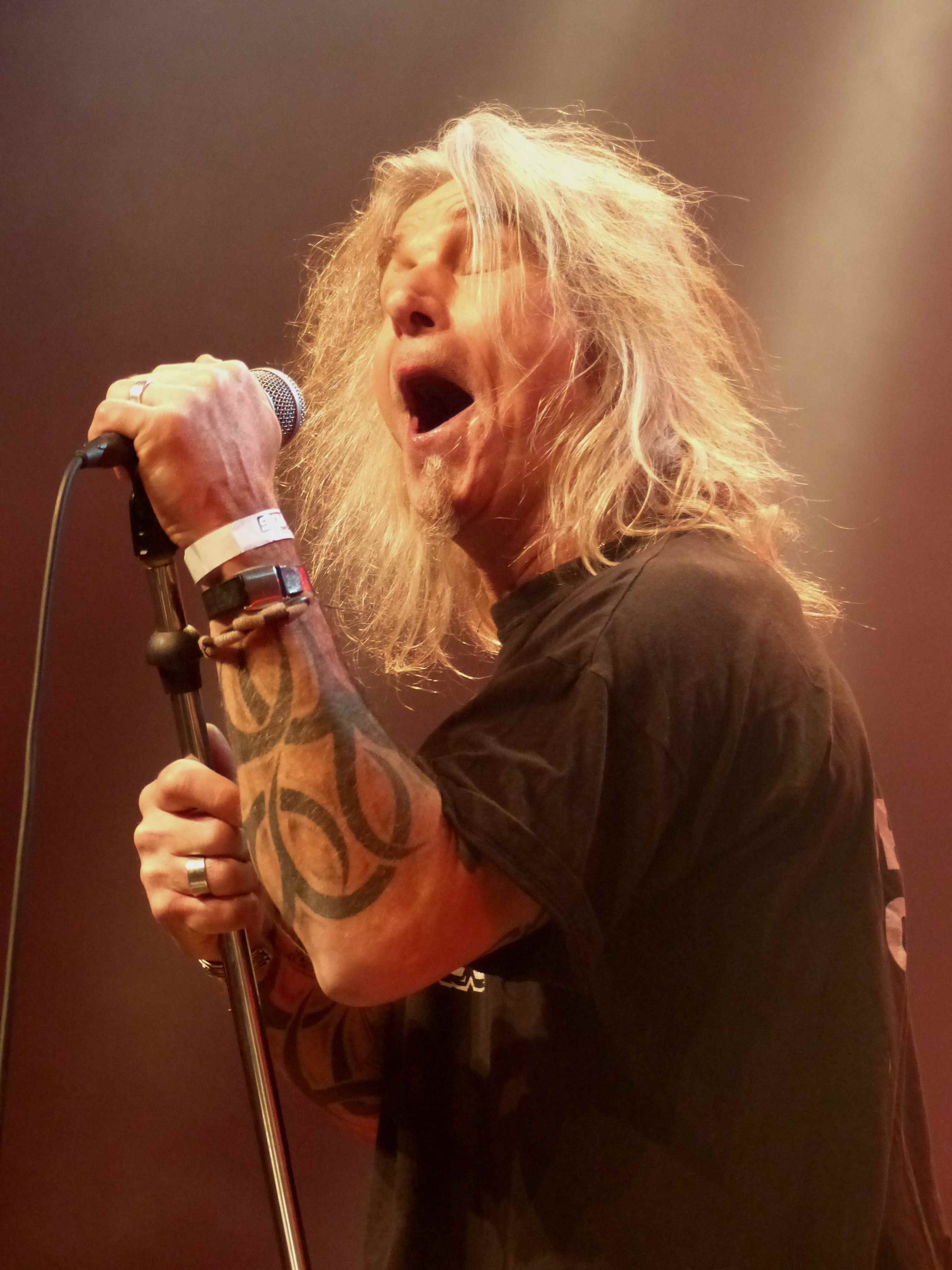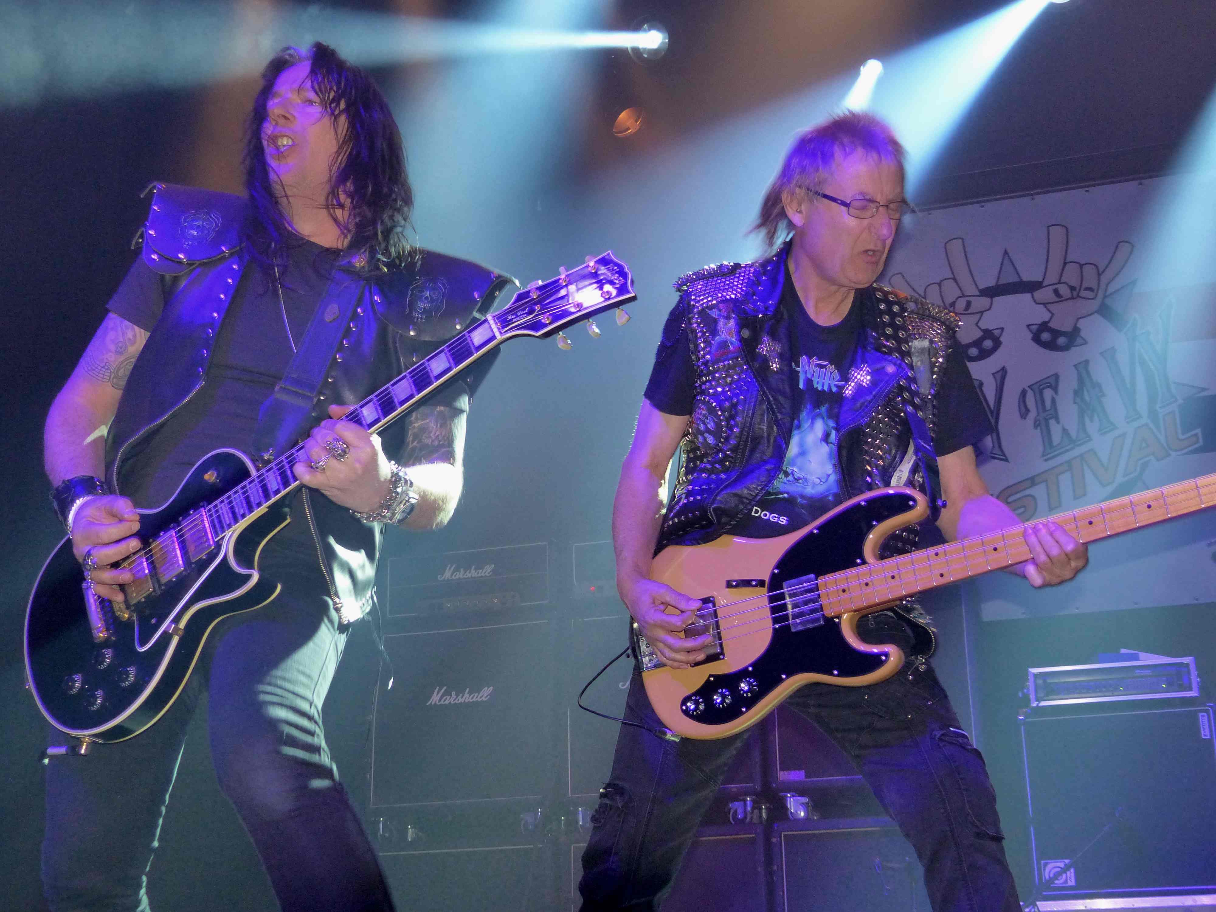 Dan komt er een moment, waar ik ook wel naar uit keek, want TOGETHER heb ik vroeger wel gezien, maar toch niet zo heel vaak. Ze stonden op Very ‘Eavy een paar jaar geleden, maar dat heb ik gemist. Ik moet ook eigenlijk gewoon elke keer naar dit mini Keep It True Festival gaan, want de bandjes, die daar spelen, staan garant voor nostalgie en kwaliteit. Dat is Hugo wel toevertrouwd, zo bleek vandaag maar weer. TOGETHER in de meest originele staat, die maar denkbaar is. Laat ik vooraf verklappen, dat dit leidde tot de verrassing van de dag. Dat TOGETHER een goede band was, hadden ze al duidelijk gemaakt op de “Playing Games” mini LP, maar dit was echt heerlijk om te horen. Scheurende gitaren en hard zwoegende rockers, die de zaal helemaal in vervoering wisten te brengen. “Playing Games” gaat scheurend van start en dit rockt echt als een malle. De hele mini LP zal vanavond de revue passeren, maar ook minder bekende nummers zoals “I’ve Got Your Number”. Het smaakt beslist naar meer. Het is duidelijk te merken, dat zanger Iwan Schiphorst nog het meeste moeite heeft om zichzelf op het podium te presenteren. Volgens mij, zou hij het liefst zijn zangkunsten vertonen en daarmee basta. Maar het op het podium staan, hoort er ook bij. Zijn zangkwaliteiten zijn er echter niet minder om en daar gaat het mij voornamelijk om. “Grab Your Mind” is van de “Playing Games” release en soms valt mijn mond even open van verbazing, dat TOGETHER zo strak voor de dag komt. “No Matter” volgt en verhoogt de feestvreugde alleen maar. Waarom heeft deze band toendertijd het bijltje erbij neergegooid? Uit meerdere monden hoor ik gejubel over dit optreden, dat vervolgd wordt met “Long Trail” van de eerste demo uit 1982. De spelvreugde is af te lezen van de gezichten van de diverse leden en met “Heavy Metal Lady” wordt teruggegrepen naar de tweede demo uit 1983. Met “Traveller” keren we weer terug naar de EP, toendertijd nog geproduceerd door NIKKI BUZZ. Wie kent hem nog? M-80 heette zijn band, maar ik dreig af te dwalen en dan is er maar een straf en dat is “Burn In Hell”. Hiermee wordt het vuurtje nog een keertje opgepookt en worden de laatste zweetdruppels naar buiten geperst. Ik zie bij iedereen twee duimen omhoog gaan aan het einde van dit geweldig lekkere optreden. Hans Pendavingh van de Heavy Metal Maniacs zegt, dat hij maar eens moet kijken of de werkgroep, die het programma van het Heavy Metal Maniacs Festival deze naam niet op hun lijstje kan zetten voor in de toekomst. Voor velen een regelrechte eye-opener. Ik hoop, dat de band dit ook inziet en dat ze misschien die “Playing Games” nog eens in een uitgebreide versie op de markt kunnen brengen met de nummers van de demo’s erbij. Dit smaakt beslist naar meer en nog veel meer.
