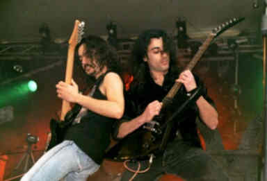 On Saturday, the main festival took place. We were at the same hotel as the guys of ELIXIR. We decided to leave early, because we didn’t want to miss a thing. And I am glad we did, so it turned out later that day. The guest list was perfectly arranged, and when you entered the hall, you were already overwhelmed by metal t-shirts, CDs, DVDs and other great collectors items. A good initiative, because when you don’t like a band on stage, you can spend your money on the metal market. After walking around a bit for a couple of minutes, I see my wife Rita (who is the photographer today!) in conversation with a guy with long, black hair and a track suit. Holy shit! That’s Brian Thomas, the frontman of HALLOWEEN. I’d better join them, say ‘hi’ to the band and have a chat with them. We still have a full hour before the first band will go on stage, so we have all the time in the world. The band wanted to take a picture together with us and after that, they have to go to do a soundcheck. So we were able to see this as well. In the meantime, we also scored a promo disc of the well-known ABANDON demo (which we reviewed for Headache magazine), and a very limited live demo of the band. These magic moments made my day already, and the festival didn’t even get started yet!