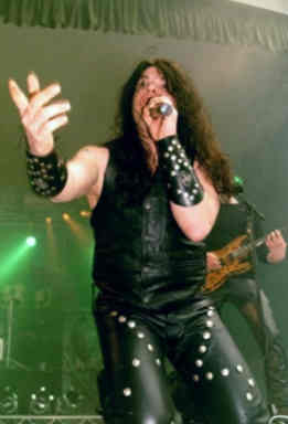 BLITZKRIEG was next on the bill, and they’re always ready to deliver a great show. Brian Ross told us, that the SATAN reunion at Wacken Open Air would be a one-off thing only, which would possibly be followed by a live CD recording. Brian was dressed in leather, as usual, completed with handcuffs. As a sort of tribute to Rob Halford I think, because the music of BLITZKRIEG slowly starts to sound like the high priests of heavy metal more and more. Metalhead Sascha ‘Sir Lord Doom’ Maurer (RITUAL STEEL) climbed on stage to sing ‘We Rock Forever’ with the band, in which he succeeded quite well in my opinion. We also heard awesome versions of songs like ‘Dark City’, ‘Unholy Trinity’, ‘Enchanted Tower’, the SATAN cover ‘Blades Of Steel’, ‘Blitzkrieg’ and as an encore they used the JUDAS PRIEST cover ‘Hell Bent For Leather’ (which is on their new album ‘Sins And Greed’).