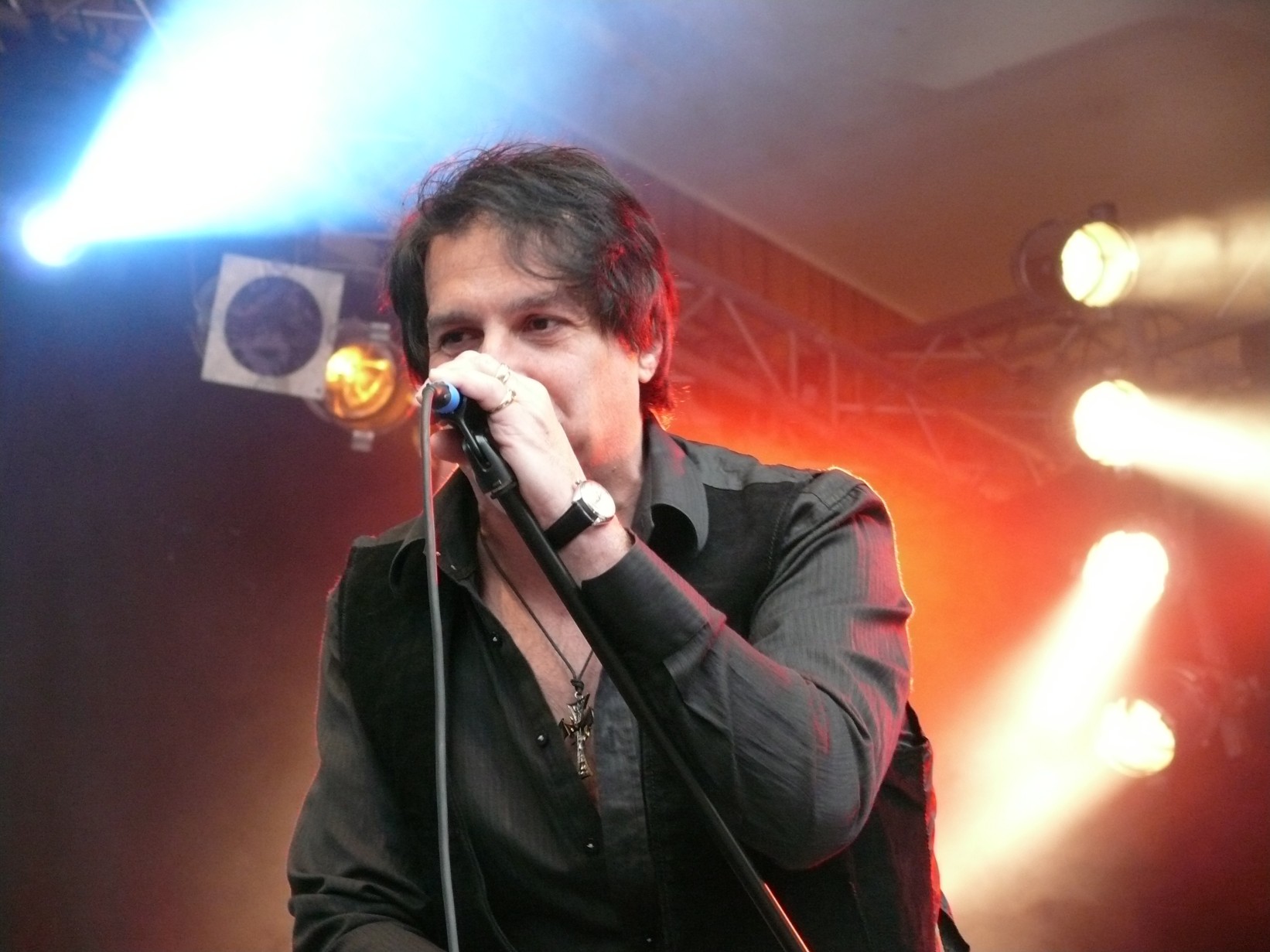 Time was moving fast and we were getting ready for the surprise act of tonight. In fact, we were getting two surprises at once! The first one was something we found out long before it would actually happen. This day was quite special in that respect. Not only did we witness the CD release of the “Live In Belgium” CD of ACID, but three band members were in Lauda to do an autograph session. Frontlady Kate, bass player T-Bone and four-legged drummer (how on earth could he be so fast otherwise??) Anvil showed up and I can’t tell you, they were so friendly and down-to-earth. And they were very surprised and honered with all the attention, that they got from metal fans all over the world. Kate would also perform a song with members of LANFEAR and ETERNAL REIGN, who were the backing group for the second surprise act as well. I have seen ACID several times in the early eighties and I’d never thought of facing them again after they disbanded in 1985. Another miracle happened, when the band kicked out “Max Overload” with Kate on vocals. And I can tell you from the bottom of my heart, that she still stands tall. This small, one song performance asks for more. I was very excited for this to happen at last and I am glad, that Kate made a smashing performance out of these four minutes. You can’t errase anything and have a second go, it has to be right the first time. And luckily, it did turn out right and so much more. We knew, that she was nervous as hell for this live appearance, but if she wouldn’t impress the people with her voice, she would definitely impress them with her charm and devotion to sing “Max Overload” tonight. It brought up some very warm feelings by yours truly, which can’t be said from the second surprise act. The fact, that this was some kind of a deception had nothing at all to do with the organisation though. It was more the volcano’s fault, that things got messed up a bit here. Originally, there was a tribute show scheduled for the late CRIMSON GLORY singer Midnight, who passed away in 2009. Due to illness and other difficulties, the original vocalists couldn’t make it tonight, so Mike Vescera was asked to do two songs and Harry ‘The Tyrant’ would step in and do one song as well. Once again, the band consisted of the same members of LANFEAR and ETERNAL REIGN, who backed up Kate earlier. Mike didn’t really rehearse the songs and so “Valhalla” sounds almost unrecognizable to the audience, which is in fact a real CRIMSON GLORY classic. “Red Sharks” didn’t get any better, resulting in a poor surprise, that was gone with the wind. However, Harry’s version of “Lonely” did give me the goosebumps all over. Not only because he tried so damn hard, but also because of the emotional laden lyrics, that had been rehearsed this time. A tape of “Lost Reflections” announces the end of this surprise act. The idea of paying tribute to Midnight was absolutely perfect and the man certainly deserves it for what he has done for the heavy metal with his music. The way, it turned out to be, was a bit clumsy, I’m sorry to say so.